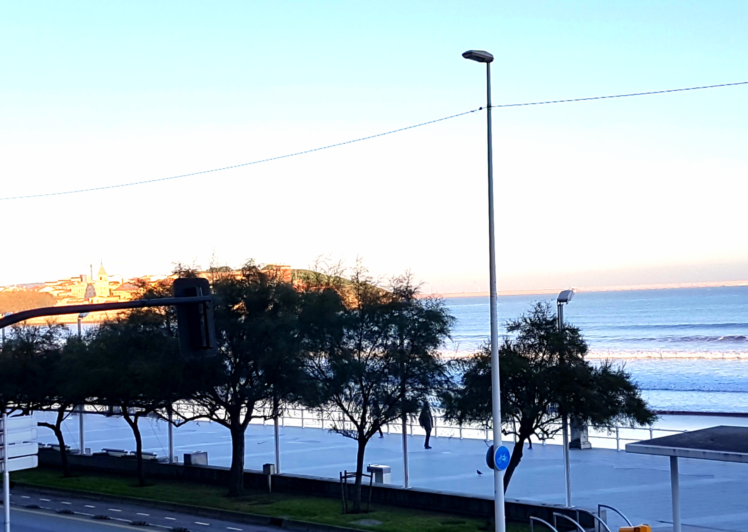 Piso al pie del Muro de la Playa de San Lorenzo, Gijón. Distribuido en dos habitaciones, salón, baño, cocina. Todo exterior.