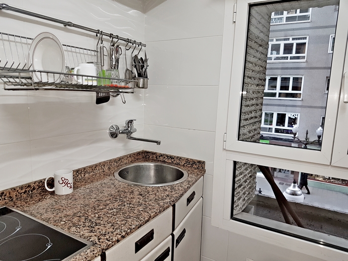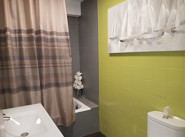 Piso al pie del Muro de la Playa de San Lorenzo, Gijon. Se distribuye en salón, cocina, baño, dos dormitorios, todo exterior.